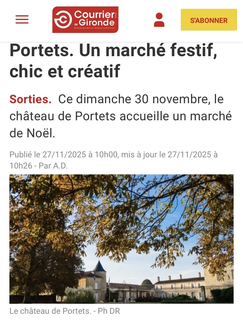 Le journal Courrier de Gironde a consacré un article à notre événement Noël des Sens & des Arts, organisé le dimanche 30 novembre au Château